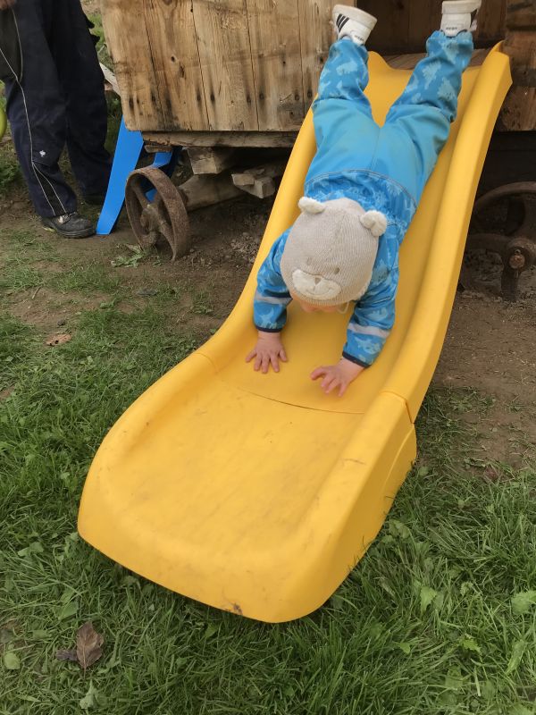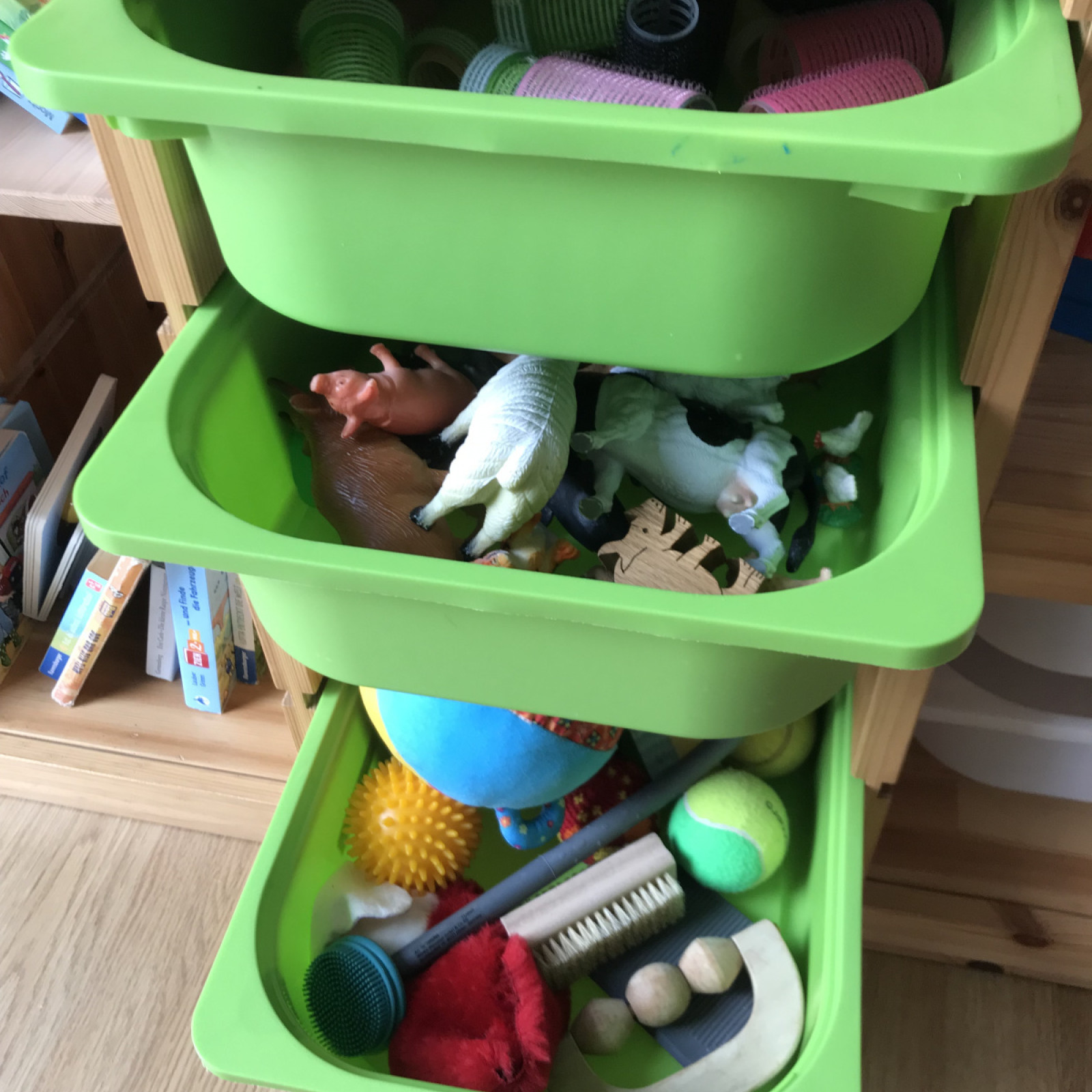 In Küche und Badezimmer gibt es Lerntürme, die den Kindern unsere erwachsene Handlungshöhe eröffnen, das Bad kann zudem für großflächige Mal- und Wahrnehmungsaktionen genutzt werden.