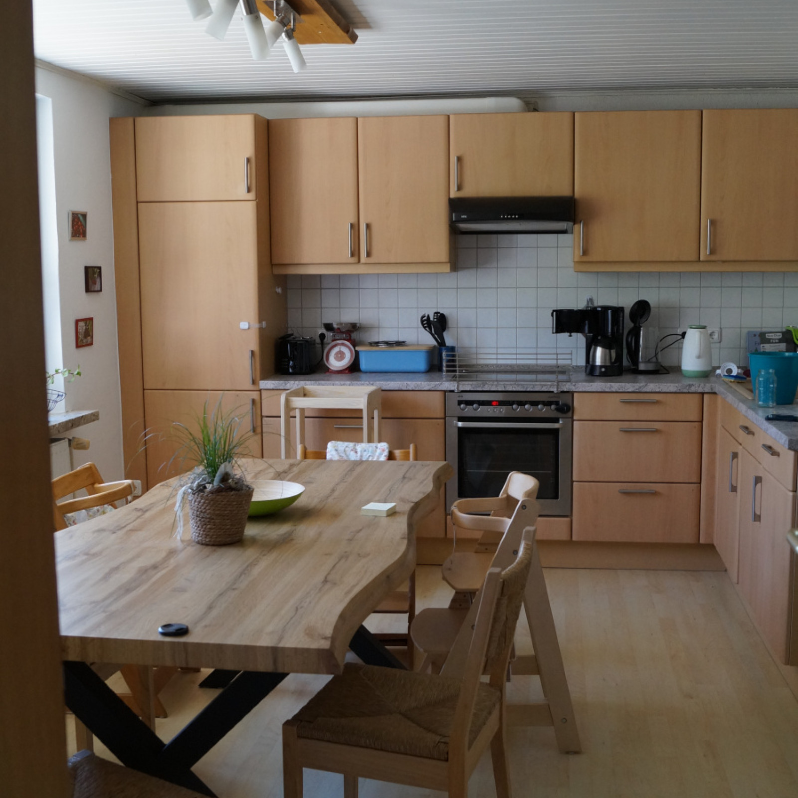 Der große Tisch in der Küche sowie die 5 Hochstühle ermöglichen uns gemeinsame Mahlzeiten in einem schönen Ambiente.